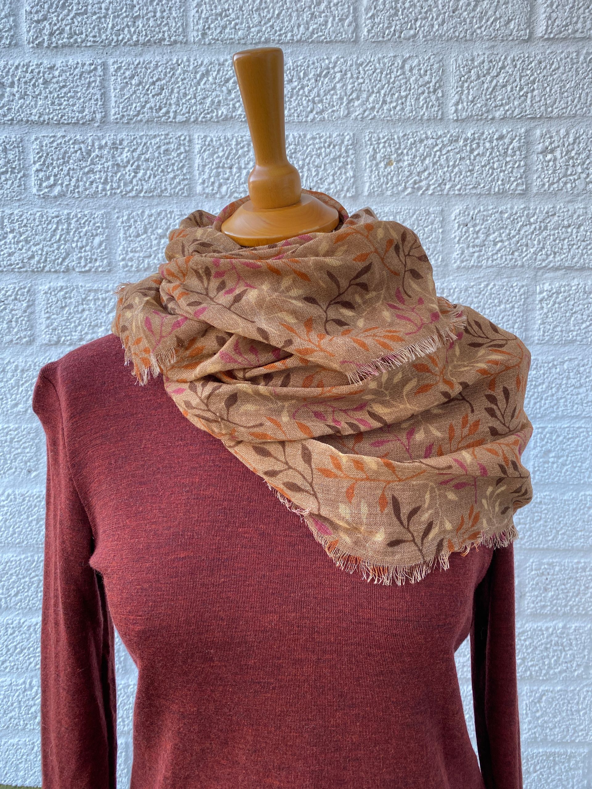Sjaal 100% merinowol Branches bruin